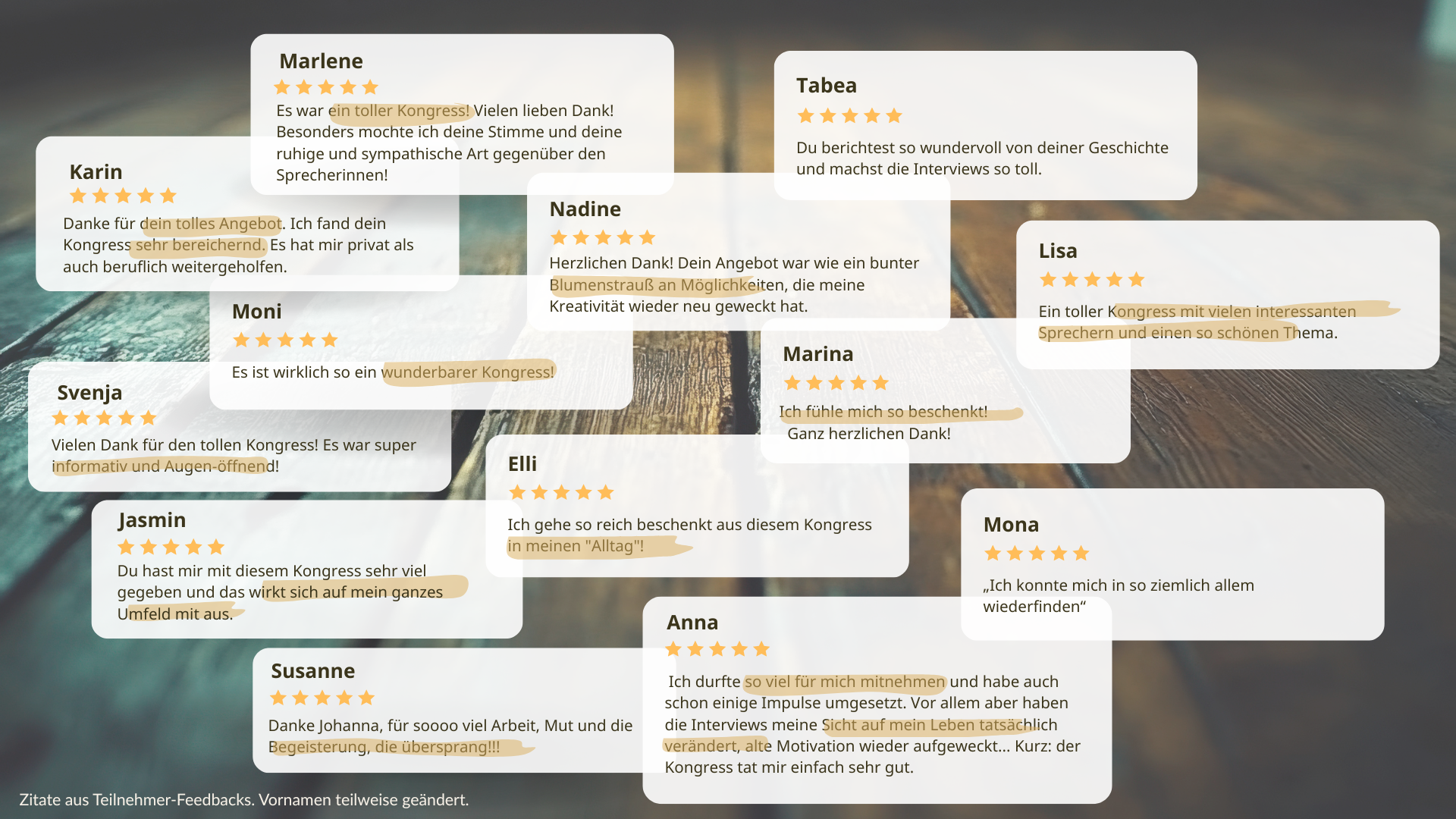 Wir möchten so viele Menschen wie nur möglich bewegen und erreichen, daher kannst du während des Kongress-Zeitraums 100% kostenlos schauen. Erweitere Deinen Blick und lass dich inspirieren.